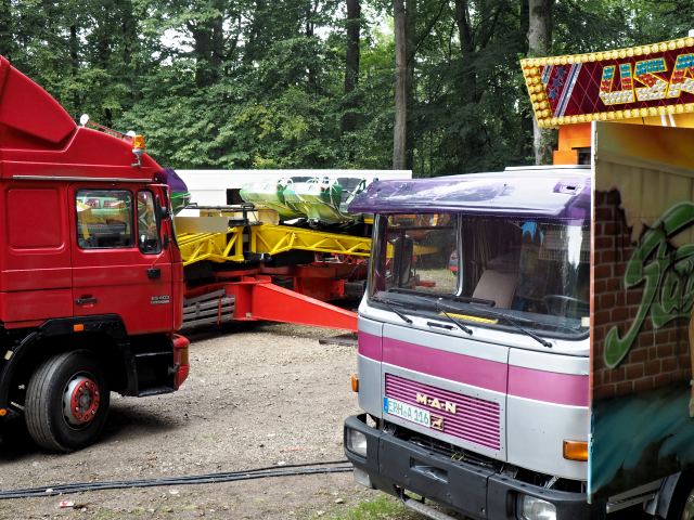 Schwere LKW beherrschen das Bild